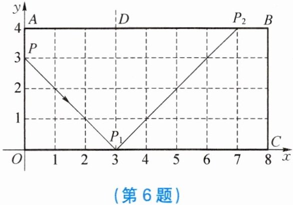 6. 如图,在平面直角坐标系中,长方形 $ OABC $ 的顶点 $ A $,$ C $ 分别在 $ y $ 轴、$ x $ 轴上.动点 $ P $ 从点 $ (0,3) $ 出发,沿图中箭头方向运动,到点 $ (3,0) $,每当碰到长方形 $ OABC $ 的边时反弹,反弹时反射角等于入射角(即 $ \angle PP_1D = \angle P_2P_1D $),当点 $ P $ 第 $ 2024 $ 次碰到长方形 $ OABC $ 的边时,点 $ P $ 的坐标为______