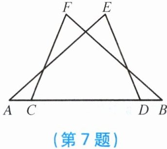 7. 如图,$\triangle ADE≌\triangle BCF$,且点$A$,$C$,$D$,$B$在同一直线上,$AD = 6\mathrm{cm}$,$CD = 5\mathrm{cm}$,求$BD$的长.