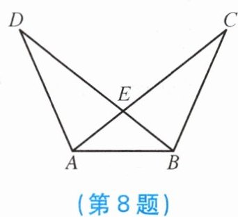 8. 如图,$\triangle ABD≌\triangle BAC$,$AC$,$BD交于点E$,求证:$\angle DAE = \angle CBE$.