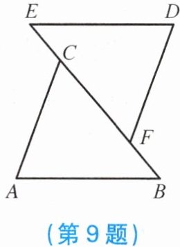 9. 如图,$\triangle ABC≌\triangle DEF$,$\angle A = 70^{\circ}$,$\angle B = 50^{\circ}$,点$E$,$C$,$F$,$B$在同一直线上,$BF = 4$,求$\angle DFE的度数和EC$的长.