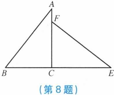 8. 如图,$\triangle ABC\cong\triangle EFC$,且点$B$,$C$,$E$在同一直线上,$CF = 5\mathrm{cm}$,$\angle EFC = 52^{\circ}$,求$\angle A的度数和BC$的长.
