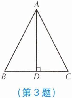 3. 如图,在 $ \triangle ABC $ 中,$ D $ 是 $ BC $ 的中点,$ AD \perp BC $,以下说法