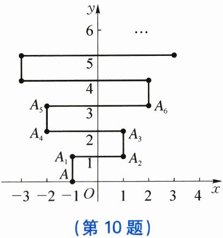 10. 如图,在平面直角坐标系中,点 $ A $ 的坐标为 $ (-1,0) $,点 $ A $ 第一次向上跳动 $ 1 $ 个单位长度至点 $ A_{1}(-1,1) $,紧接着第 $ 2 $ 次向右跳动 $ 2 $ 个单位长度至点 $ A_{2}(1,1) $,第 $ 3 $ 次向上跳动 $ 1 $ 个单位长度,第 $ 4 $ 次向左跳动 $ 3 $ 个单位长度,第 $ 5 $ 次向上跳动 $ 1 $ 个单位长度,第 $ 6 $ 次向右跳动 $ 4 $ 个单位长度……依此规律跳动下去,点 $ A $ 第 $ 2024 $ 次跳动至点 $ A_{2024} $ 的坐标是( )。