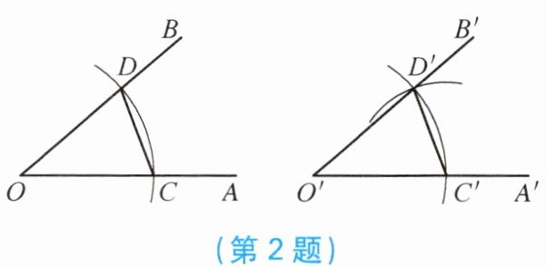 2. 如图,用直尺和圆规作$\angle A'O'B'等于已知角\angle AOB$的过程中,能证明$\triangle ODC\cong\triangle O'D'C'$的依据是(
