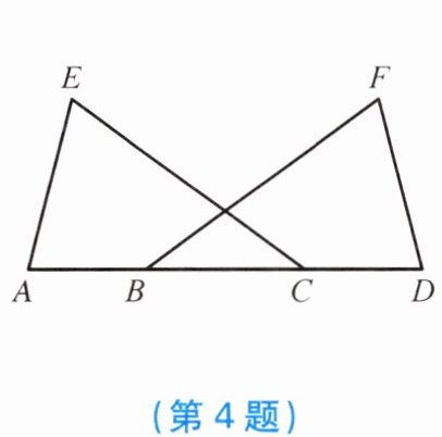 4. 如图,点$B$,$C在线段AD$上,$CE = BF$,$\angle E= \angle F$。再添加一个条件
