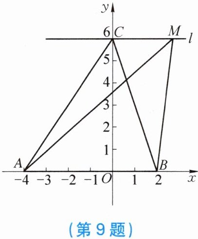 9. 如图,点 $ A $,$ B $,$ C $ 的坐标分别为 $ A(-4,0) $,$ B(2,0) $,$ C(0,6) $.
