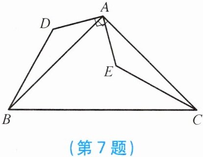 7. 如图,$AB = AC$,$AB \perp AC$,$AD \perp AE$,且$\angle ABD = \angle ACE$.求证:$BD = CE$.
