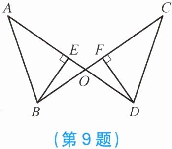 9. 如图,$AD和BC相交于点O$,$BE \perp AD于点E$,$DF \perp BC于点F$,$BE = DF$,$\angle ABC = \angle CDA$.求证:$AB = CD$.