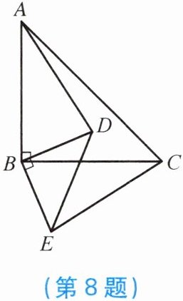8. 如图,在 $\triangle ABC$ 和 $\triangle DBE$ 中,$\angle ABC = \angle DBE = 90^{\circ}$,$DB = BE$,$AB = BC$,连接 $AD$,$CE$.
