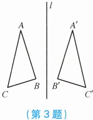 3. 如图,$\angle A = 30^{\circ}$,$\angle C' = 60^{\circ}$,$\triangle ABC$ 与 $\triangle A'B'C'$ 关于直线 $l$ 对称,则 $\angle B$ 的度数为(