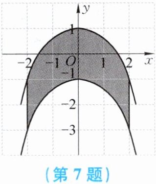 7. 如图,两条抛物线 $ y_{1} = -\frac{1}{2}x^{2} + 1 $,$ y_{2} = -\frac{1}{2}x^{2} - 1 $ 与分别经过点$(-2,0)$,$(2,0)$且平行于 $ y $ 轴的两条平行线围成的阴影部分的面积为