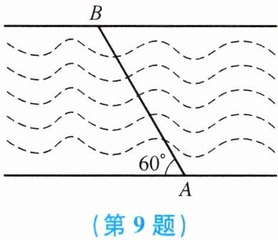 9. 如图,若河岸的两边平行,河宽为$900\ m$,一只船由河岸的$A处沿直线方向开往对岸的B$处,$AB与河岸的夹角是60^{\circ}$,船的速度为$5\ m/s$,则船从$A到B$处约需时间几分?(精确到$0.1$分,参考数据:$\sqrt{3} \approx 1.7$)