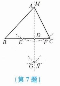 (1) 过点$A作边BC的垂线MN$,交$BC于点D$;(用尺规作图法,保留作图痕迹,不要求写作法)