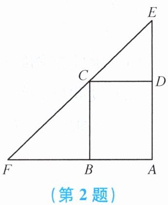 2. 如图,在一个腰长为 $ 10 $ 的等腰直角三角形的内部作一个矩形 $ ABCD $,其中 $ B $,$ D $ 分别在边 $ AF $,$ AE $ 上。则此矩形的最大面积为(