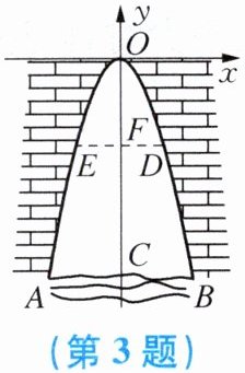 3. 一个涵洞成抛物线形,它的截面如图所示.现测得,当水面宽 $ AB = 1.6 \mathrm{~m} $ 时,涵洞顶点与水面的距离为 $ 2.4 \mathrm{~m} $,这时离开水面 $ 1.8 \mathrm{~m} $ 处,涵洞宽 $ ED $ 是(