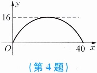 4. 有一个抛物线形桥拱,其最大高度为 $ 16 \mathrm{~m} $,跨度为 $ 40 \mathrm{~m} $.如图,现把它的示意图放在平面直角坐标系中,则此抛物线的函数表达式为