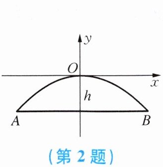 2. 赵州桥的桥拱是抛物线形.建立如图所示的平面直角坐标系,其函数的表达式为 $ y = - \frac { 1 } { 25 } x ^ { 2 } $.当水位线在 $ AB $ 位置时,水面宽 $ AB $ 为 $ 30 \mathrm{~m} $,这时水面离桥顶的高度 $ h $ 是(