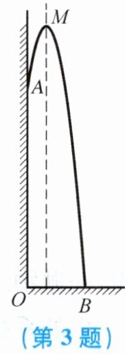 3. 某幢建筑物,从 10 m 高的窗口 $ A $,用水管向外喷水,喷出的水流呈抛物线状(抛物线所在的平面与墙面垂直).如图,如果抛物线的最高点 $ M $ 离墙 1 m,离地面 $ \frac{40}{3} $ m,则水流落地点 $ B $ 离墙的距离 $ OB $ 是(