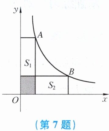 7. 如图,$A$,$B两点在双曲线y= \frac{4}{x}$上,分别经过$A$,$B$两点向坐标轴作垂线段.已知$S_{阴影}= 1$,求$S_{1}+S_{2}$的值.
