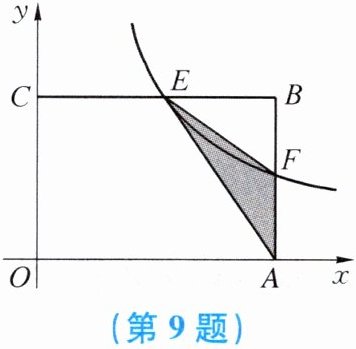 9. 如图,在矩形$OABC$中,$OA= 3$,$OC= 2$,$F是AB$上的一个动点($F不与A$,$B$重合),过点$F的反比例函数y= \frac{k}{x}(x>0)的图象与边BC交于点E$。