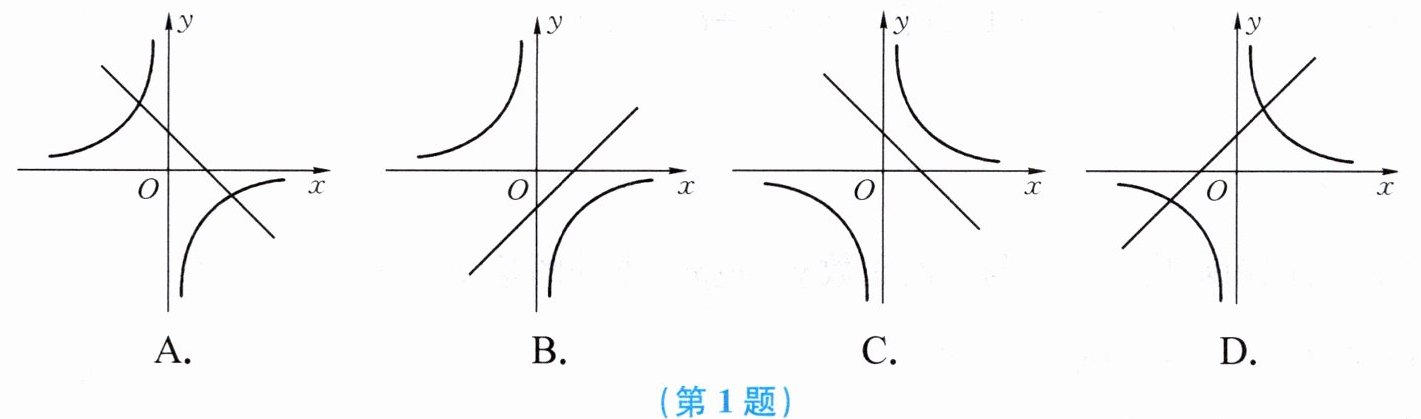 1. 在同一平面直角坐标系中,一次函数 $ y = kx - k $ 与反比例函数 $ y = \frac{k}{x} $($ k \neq 0 $)的图象可能是(
