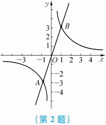 2. 如图,反比例函数 $ y_1 = \frac{k_1}{x} $ 和正比例函数 $ y_2 = k_2x $ 的图象交于 $ A(-1, -3) $,$ B(1, 3) $ 两点.若 $ \frac{k_1}{x} > k_2x $,则 $ x $ 的取值范围是(