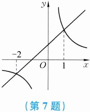 7. 一次函数 $ y_{1} = k_{1}x + b $ 和反比例函数 $ y_{2} = \frac{k_{2}}{x}(k_{1} \cdot k_{2} \neq 0) $ 的图象如图所示.若 $ y_{1} > y_{2} $,则 $ x $ 的取值范围是(