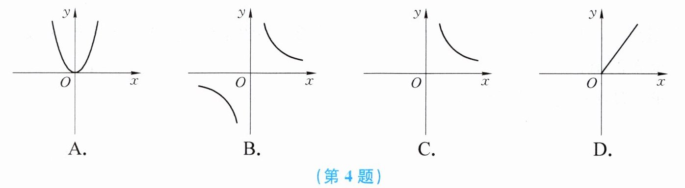 4. 直角三角形两直角边的长分别为 $ x $,$ y $,它的面积为 $ 3 $,则 $ y $ 与 $ x $ 之间的函数关系用图象表示大致是(
