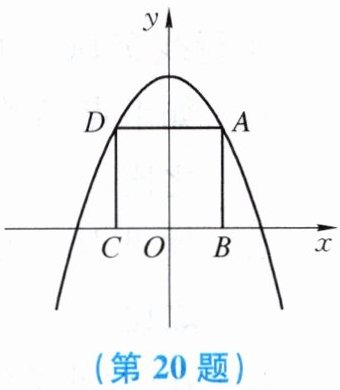 20. 已知二次函数 $ y = ax^{2} - 4a $ 图象的顶点坐标为 $ (0,4) $,矩形 $ ABCD $ 在抛物线与 $ x $ 轴围成的图形内,顶点 $ B $,$ C $ 在 $ x $ 轴上,顶点 $ A $,$ D $ 在抛物线上,且点 $ A $ 在点 $ D $ 的右侧.