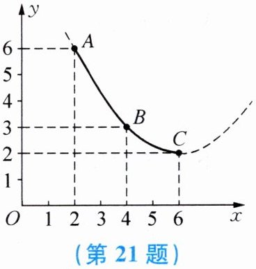 21. 蔬菜基地种植某种蔬菜,由市场行情分析知,$ 1 $ 月份至 $ 6 $ 月份这种蔬菜的上市月份 $ x $ 与市场售价 $ P $ 元/kg 的关系如表所示: