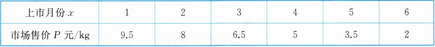 (1) 写出上表中表示的市场售价 $ P $ 元/kg 关于上市月份 $ x $ 的函数表达式;
