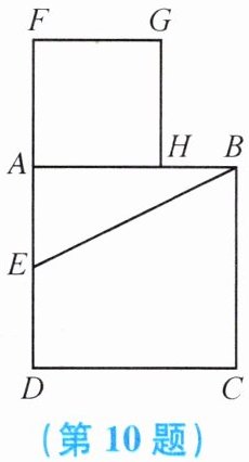 10. 如图,以长为$2的定线段AB为边作正方形ABCD$.取$AD的中点E$,连接$BE$.在$DA的延长线上取点F$,使$EF= EB$,以$AF为边作正方形AHGF$,点$H在AB$上.