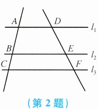 2. 如图,直线$l_{1}// l_{2}// l_{3}$,两直线$AC和DF与l_{1}$,$l_{2}$,$l_{3}分别相交于点A$,$B$,$C和点D$,$E$,$F$.下列各式中,不成立的是(