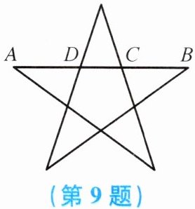 9. 如图,在五角星形中,$AD= BC$,$C$,$D两点都是AB$的黄金分割点,$AB= 1$.求$CD$的长.