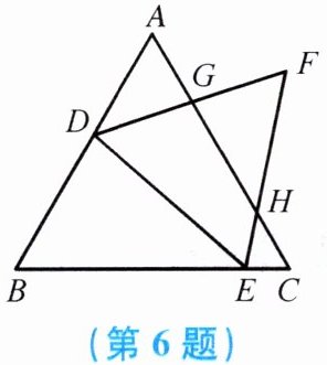 6. 如图,$\triangle ABC$,$\triangle DEF$ 均为正三角形,点 $D$,$E$ 分别在边 $AB$,$BC$ 上,写出所有与 $\triangle DEB$ 相似的三角形: