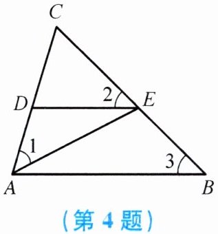 4. 如图,$\angle 1 = \angle 2 = \angle 3$,则图中相似三角形共有