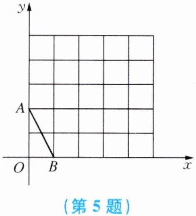 5. 在方格纸中,每个小格的顶点称为格点,以格点为顶点的三角形叫做格点三角形。在如图所示的$5×5$的方格纸中,以$A(0, 2)$,$B(1, 0)为顶点作格点三角形与\triangle OAB$相似(相似比不能为$1$),则另一个顶点$C$的坐标为