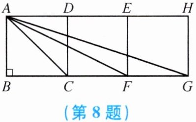 8. 如图,四边形$ABCD$,$CDEF$,$EFGH$均是正方形,且$B$,$C$,$F$,$G$在一直线上,连接$AC$,$AF$,$AG$。