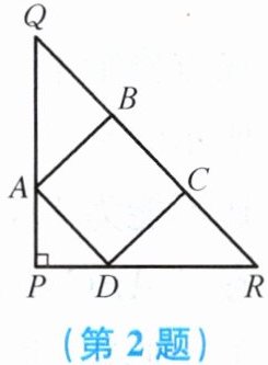 2. 如图,正方形$ABCD的边BC在等腰直角三角形PQR的斜边QR$上,其余两个顶点$A$,$D在PQ$,$PR$上,则$PA:PQ$等于(