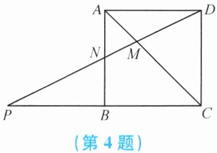 4. 如图,在正方形$ABCD$中,过点$D作DP交AC于点M$,交$AB于点N$,交$CB的延长线于点P$.若$MN = 1$,$PN = 3$,则$DM= $