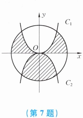 7. 如图,$ \odot O $ 的半径为 2,$ C_{1} $ 是函数 $ y = 2x^{2} $ 的图象,$ C_{2} $ 是函数 $ y = -2x^{2} $ 的图象,则图中阴影部分的面积为