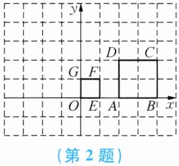 2. 如图,正方形 $ OEFG $ 和正方形 $ ABCD $ 是位似图形,且点 $ F $ 与点 $ C $ 是一对对应点,点 $ F $ 的坐标是 $ (1,1) $,点 $ C $ 的坐标是 $ (4,2) $,则它们的位似中心的坐标是(