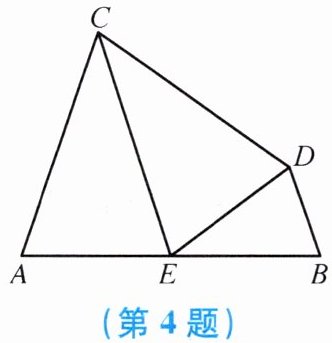 4. 如图,点$E是AB$的中点,$AC = 5$,$BD = 2$,若$\angle A = \angle CED = \angle B$,则$AB$的长是(