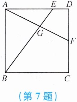 7. 如图,在正方形$ABCD$中,点$E$,$F分别在边AD$,$CD$上,$AF$,$BE相交于点G$.若$F是CD$的中点,$\frac{AG}{GF} = \frac{6}{5}$,则$\frac{AE}{DE}$的值是(