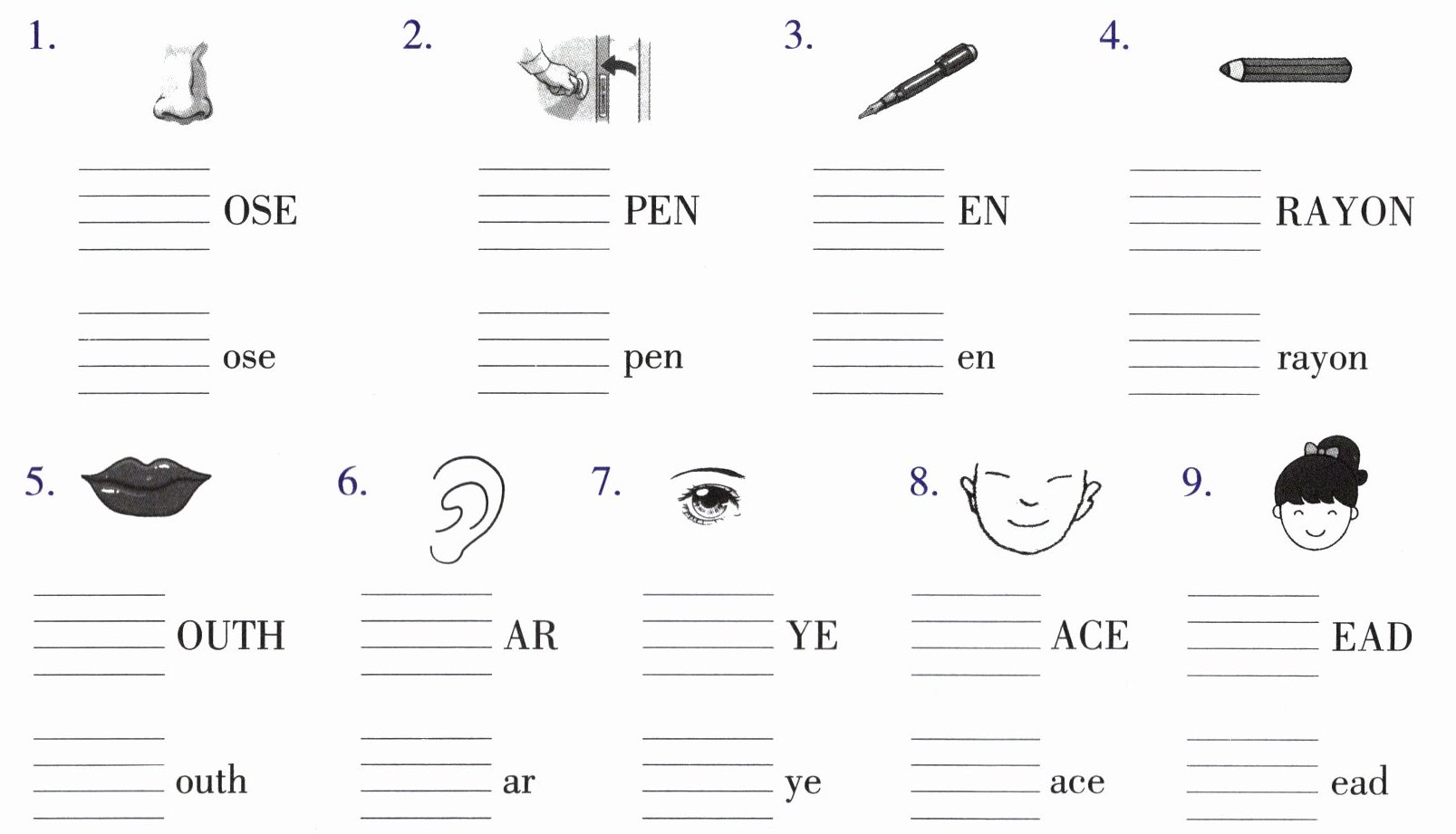 四、根据图片内容填写单词所缺的字母。(18 分)