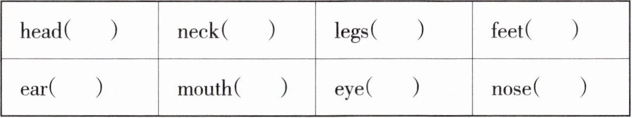四、看图,将与表格内单词相符的图片序号填在括号内。