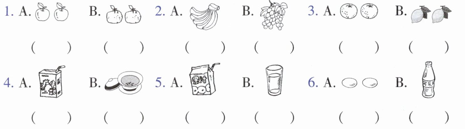 5. 购物时,你想要一些柠檬和香蕉,这样说:A. () B. ( )