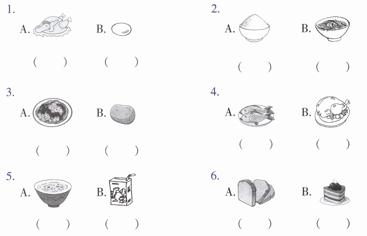 一、Look, listen and choose. 看图,听录音,在与听到内容相符的图下画“√”。