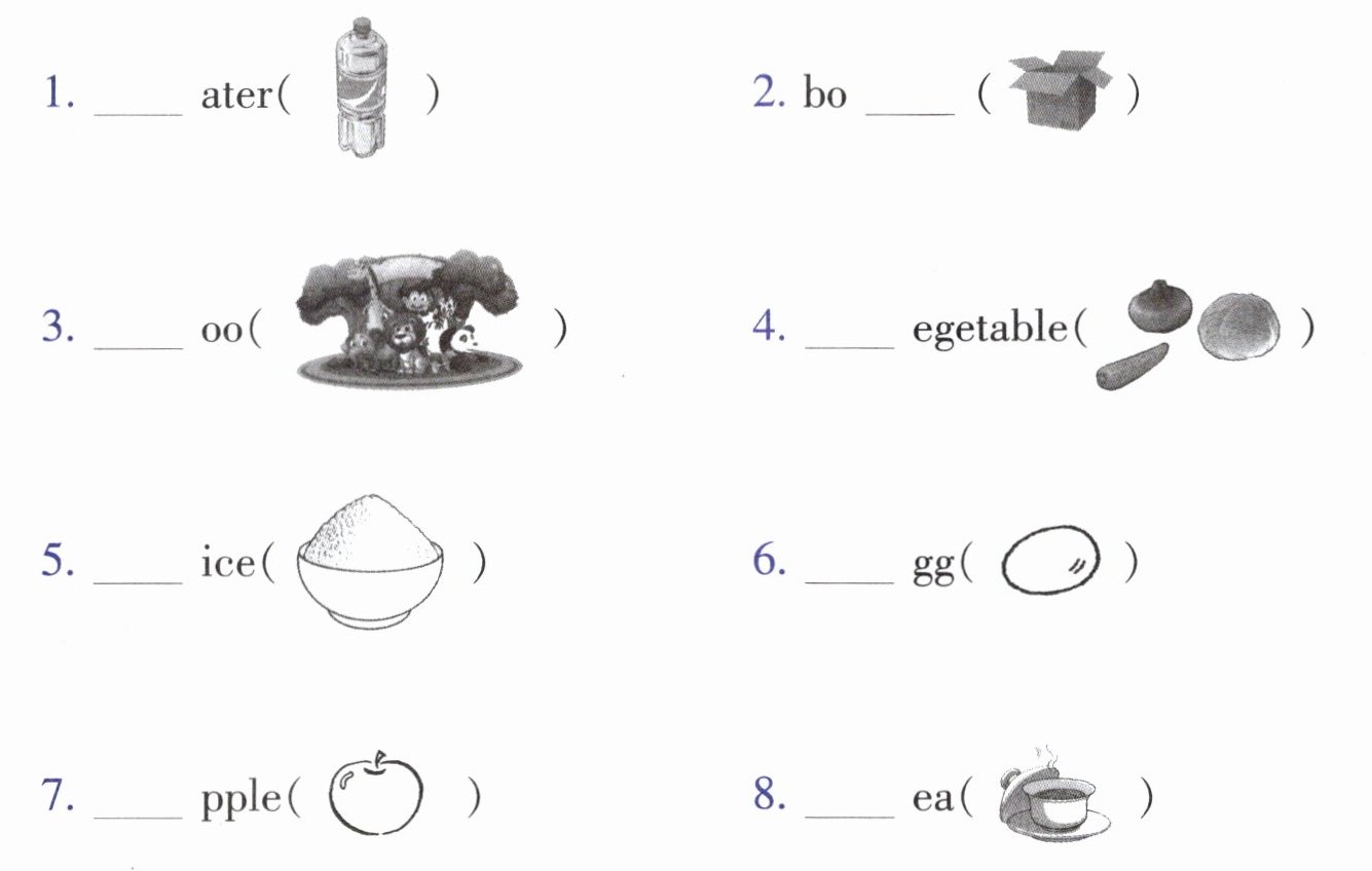 二、根据图片内容填写单词所缺的字母。