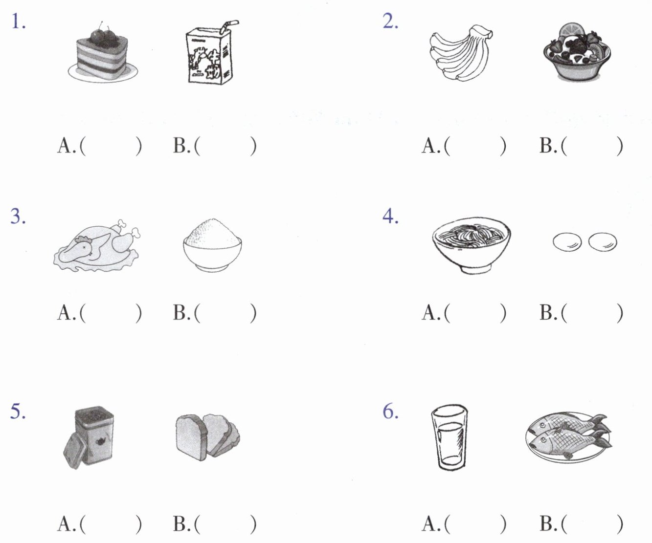 一、Look, listen and tick. 看图,听录音,在与图片内容相符的答案后画“√”。
